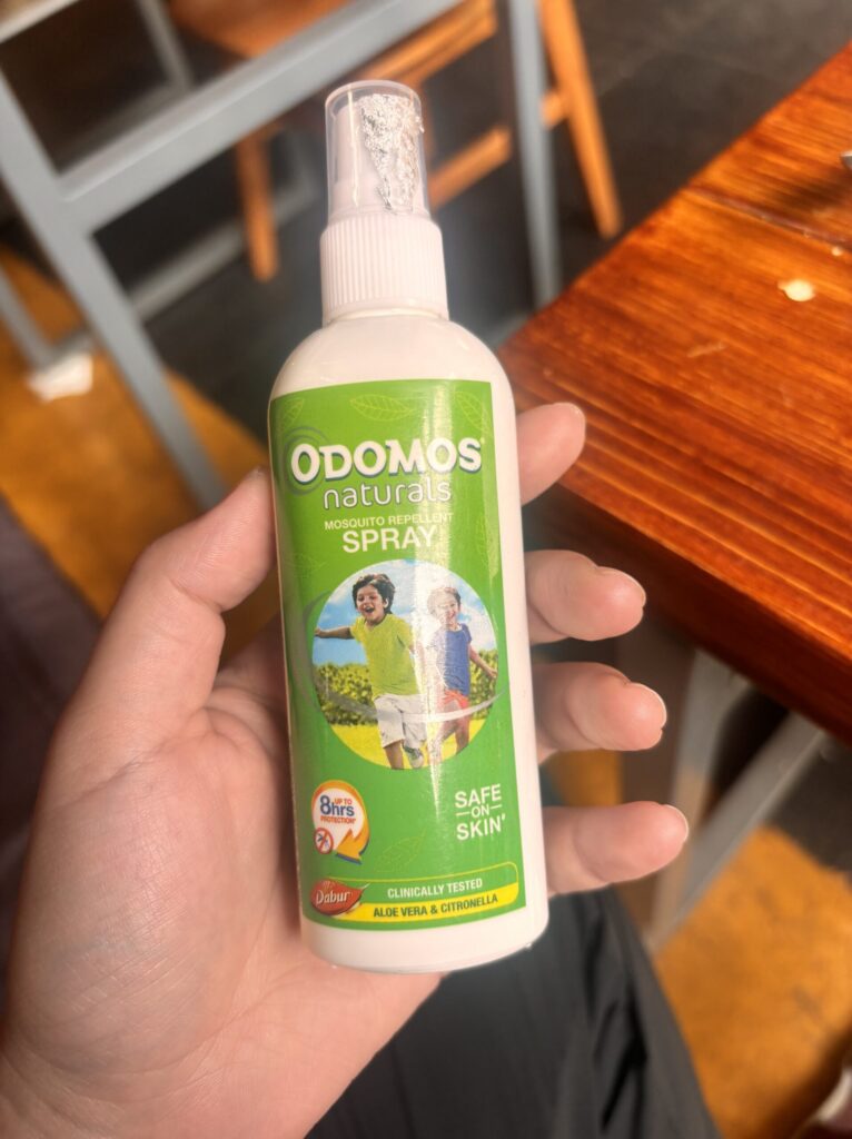 私は日本から虫除け持っていきましたが、Odomosという虫除けがアシュラムにも売っているし、近くの村の売店にも売っています。チューブやロールオンが多いので、スプレータイプが欲しかったら、ちゃんとした薬局の方がいいかも知れません。